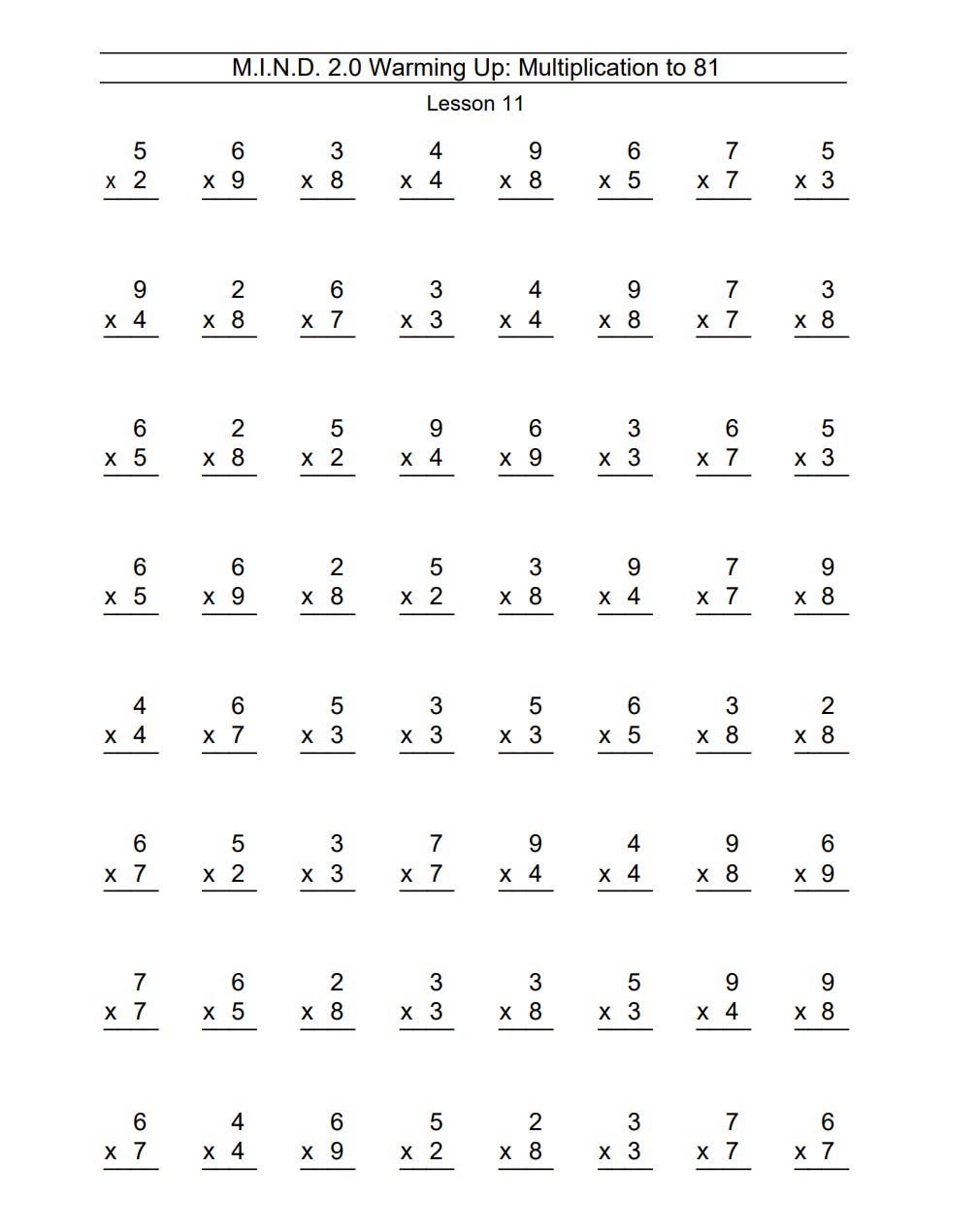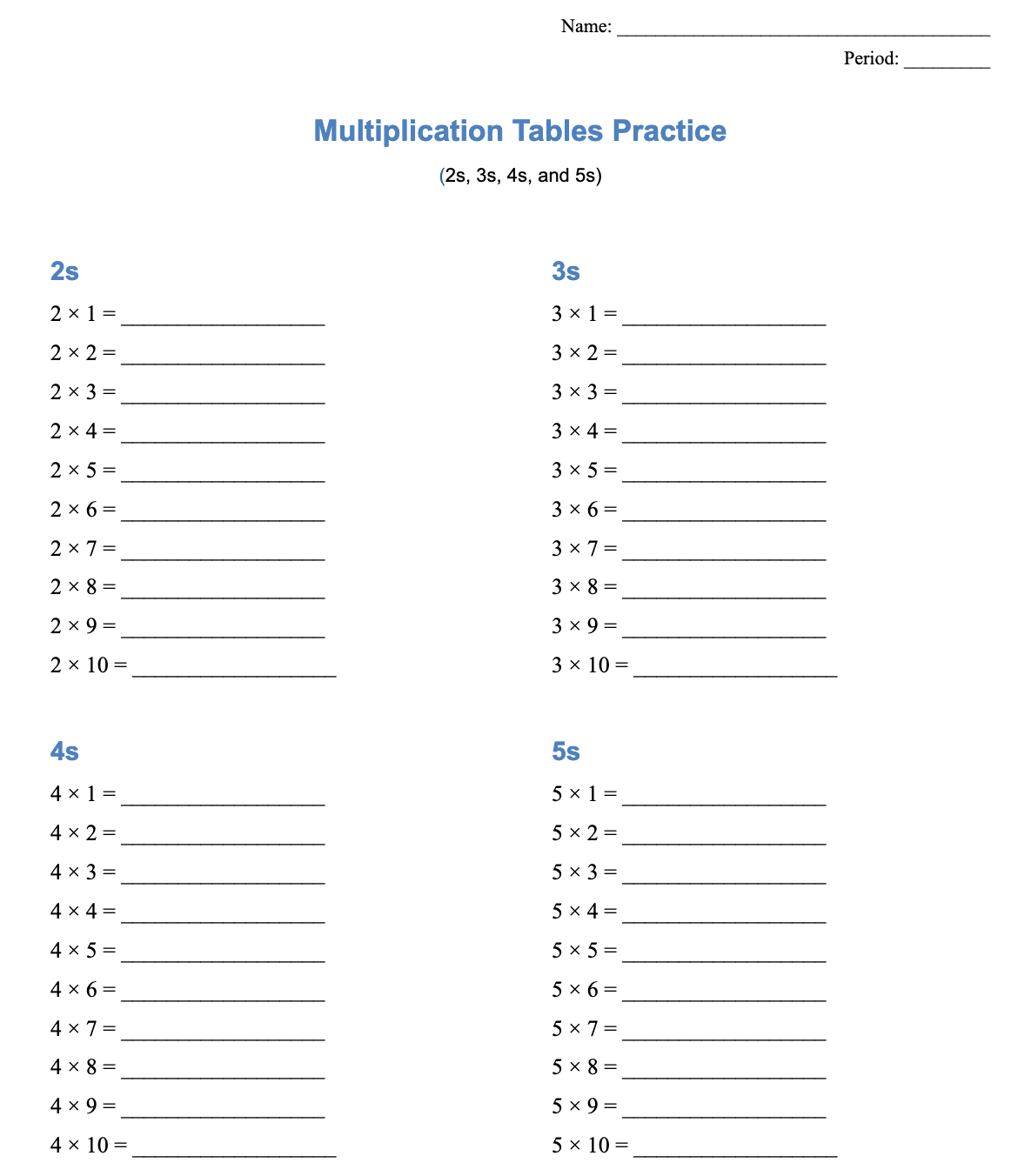 I then give students a handout similar to the one below. I make sure the handout only includes the 2s, 3s, 4s, and 5s and are interleaved.
