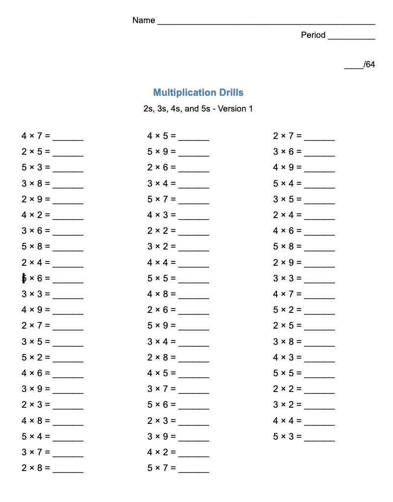 Multiplication Facts Drills