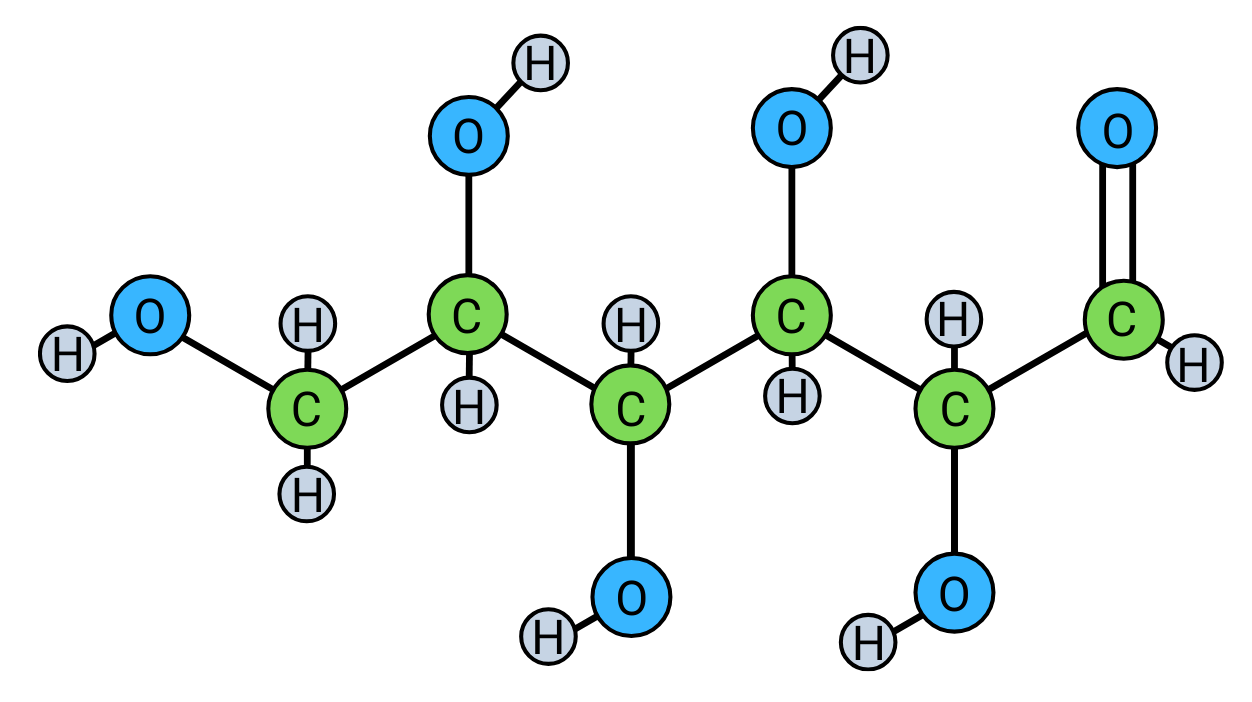 Determine the number of carbon, hydrogen, and oxygen atoms in 2C6H12O6.
