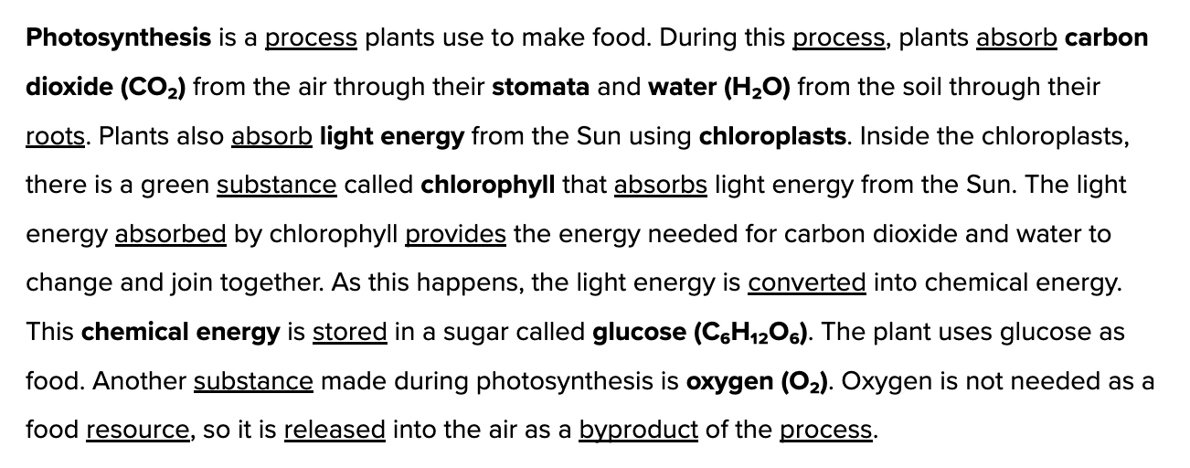 To demonstrate, I will be using a photosynthesis passage as an example: